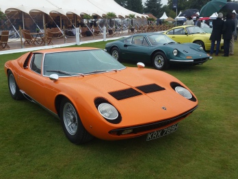 Unten links ein Lamborghini Miura in guter Gesellschaft in Blenheim Palace, UK, angetroffen, in der gleichen Farbe wie in dem Film "The Italian Job" mit Michael Caine, leider konnten wir den Inhaber nicht überzeugen, das Fahrzeug nach Deutschland zu bringen, hier hätten wir unsere Behandlung mit Hohlraumversiegelung und Unterbodenschutz kostenfrei ausgeführt.